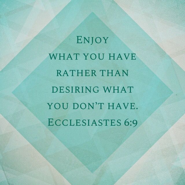 As Ecclesiastes 6:9 says, “It is better to be satisfied with what you have than to be always wanting something else” (GNT).