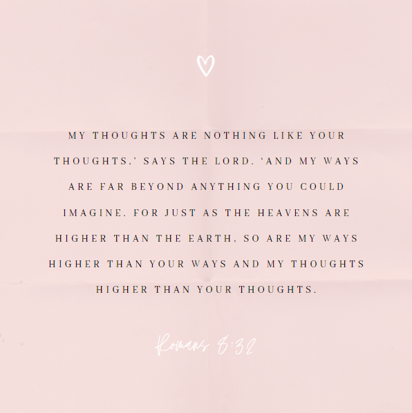 “‘My thoughts are nothing like your thoughts,’ says the LORD. ‘And my ways are far beyond anything you could imagine. For just as the heavens are higher than the earth, so are my ways higher than your ways and my thoughts higher than your thoughts’” (Isaiah 55:8-9 NLT).