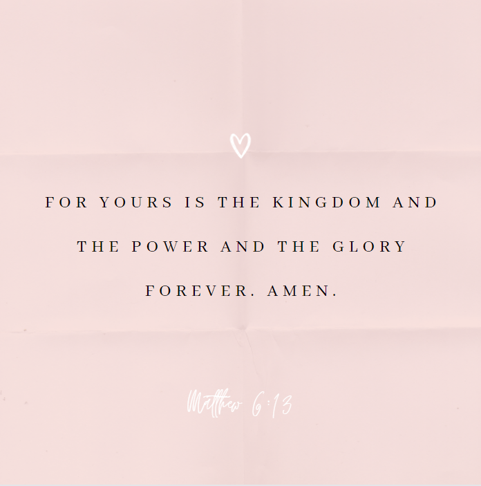End your day with a benediction—a good word. There is no better word than God’s Word. Read some promises from God. Be encouraged by truth, like this last line from the Lord’s Prayer: “For Yours is the kingdom and the power and the glory forever. Amen” (Matthew 6:13 AMP).
