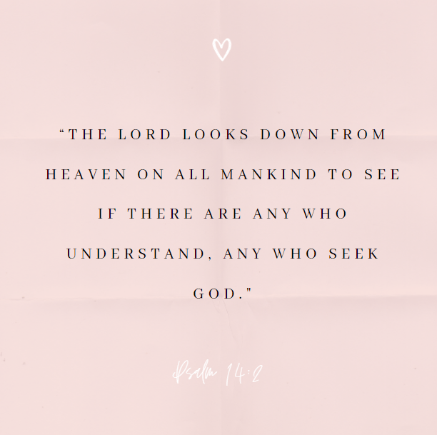 “The LORD looks down from heaven on all mankind to see if there are any who understand, any who seek God” (Psalm 14:2 NIV).