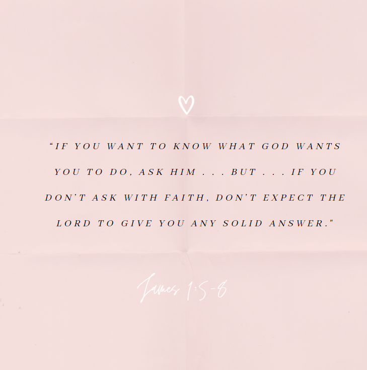 The Bible says, “If you want to know what God wants you to do, ask him . . . but . . . if you don’t ask with faith, don’t expect the Lord to give you any solid answer” (James 1:5-8 TLB).