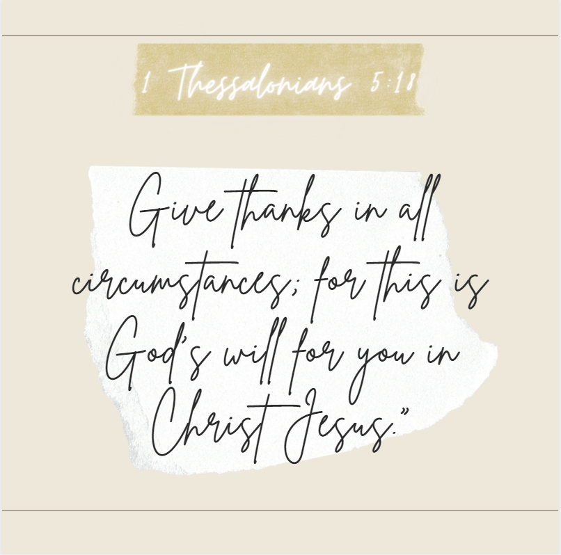 It says to give thanks in every circumstance, not for, because God can bring good even out of bad things. There is a lot of bad in the world, and these days, you may see more of it than you think you can bear. You shouldn’t be grateful for those things. God is bigger than sin. He can bring promises out of pain, blessings out of suffering. He turns crucifixions into resurrections.
