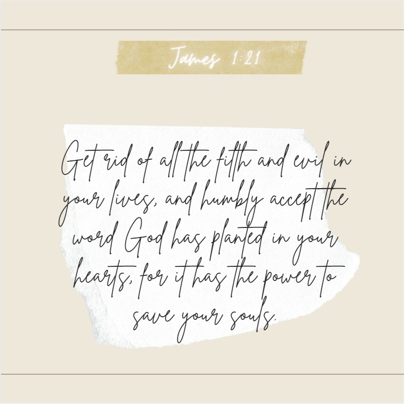 James 1:21 says, “Get rid of all the filth and evil in your lives, and humbly accept the word God has planted in your hearts, for it has the power to save your souls” (NLT).
