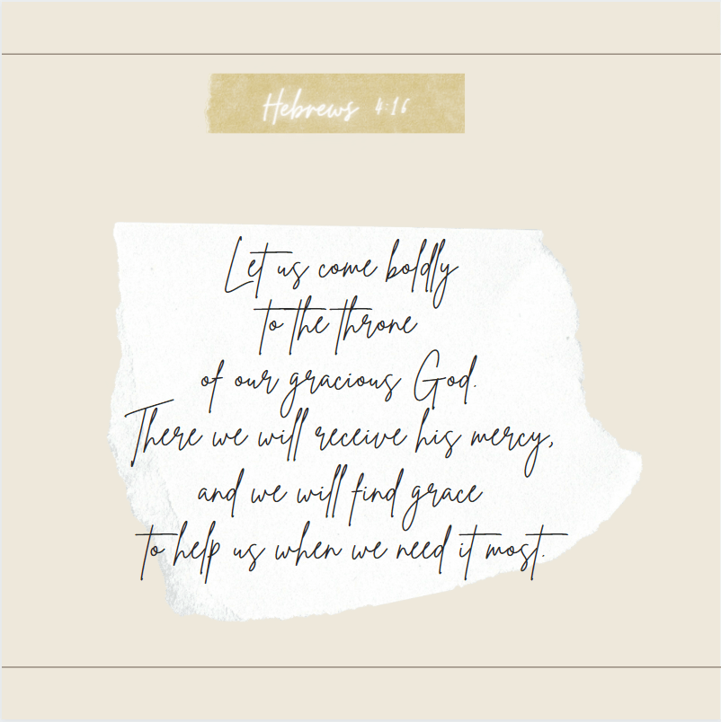 You don’t have to be hesitant or shy about coming to God for forgiveness. The Bible says, “Let us come boldly to the throne of our gracious God. There we will receive his mercy, and we will find grace to help us when we need it most” (Hebrews 4:16 NLT).