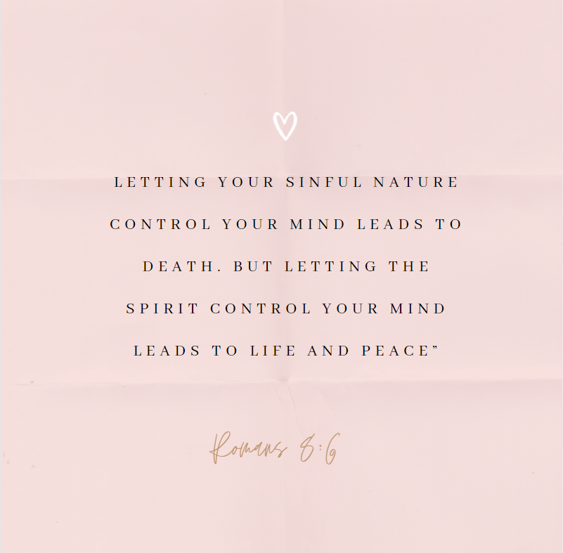 The Bible says, “Letting your sinful nature control your mind leads to death. But letting the Spirit control your mind leads to life and peace” (Romans 8:6 NLT).