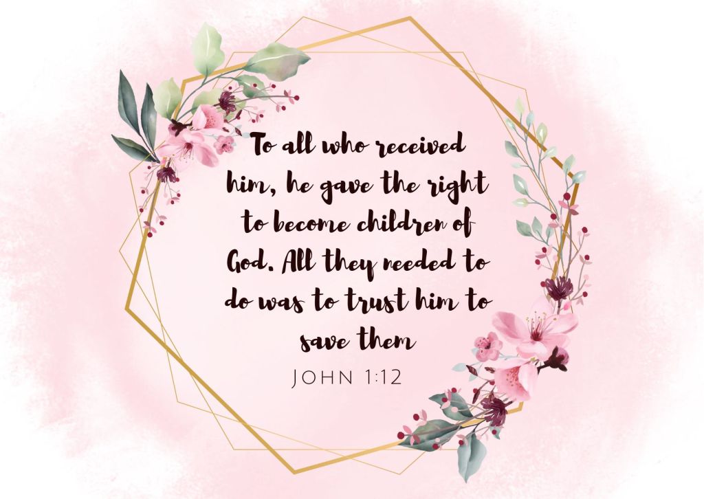 The Bible says, “To all who received him, he gave the right to become children of God. All they needed to do was to trust him to save them” (John 1:12 TLB).Notice that not everybody’s a child of God—just those who receive him into their lives. God wants you to establish a relationship with him by trusting in him.