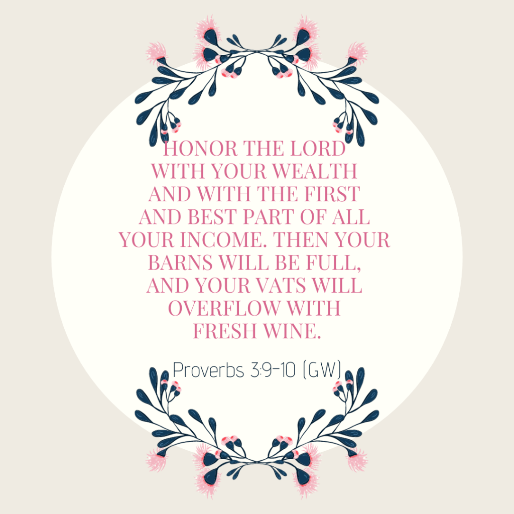 Proverbs 3:9-10 says, “Honor the LORD with your wealth and with the first and best part of all your income. Then your barns will be full, and your vats will overflow with fresh wine” (GW). The first part of that verse is the premise: You give your tithe. The second part is God’s promise: When you tithe, God will fill your barns to overflowing.
