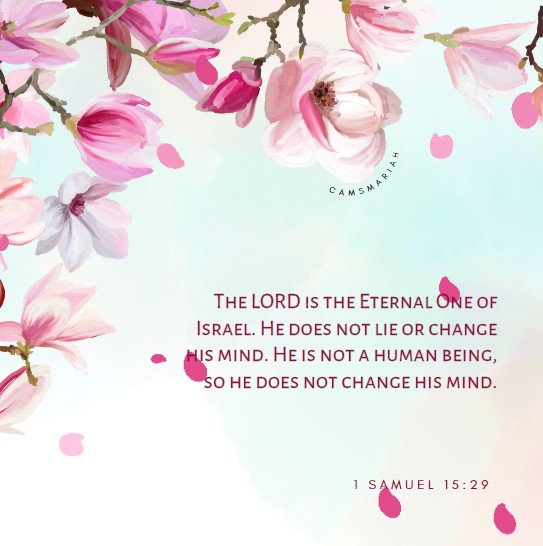 1 Samuel 15:29 underscores God’s unchanging nature.